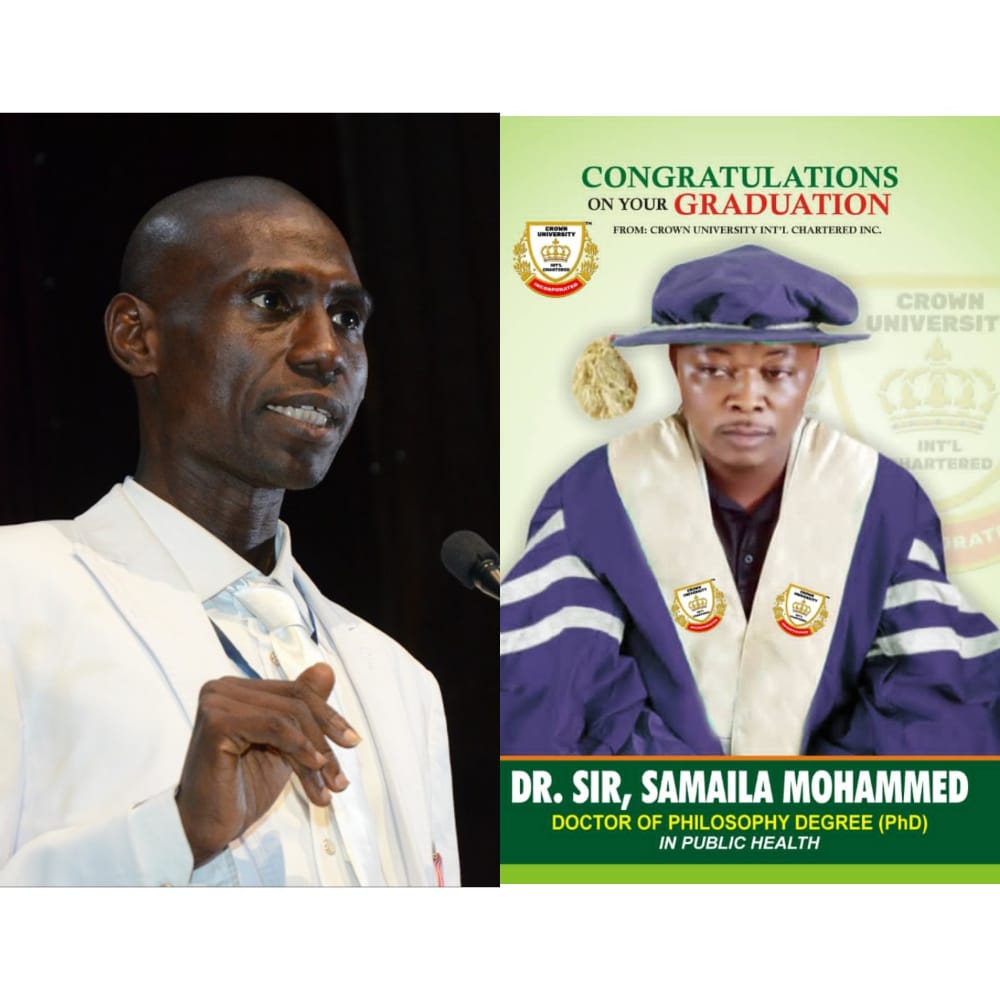 The statement by CUICI VC, World Acclaimed Distinguished Universities Research Professor of Computer Science, Information Communication Technology reads in parts: “As the Vice-Chancellor of Crown University International Chartered Inc CUICI, USA, I, Prof Sir Bashiru Aremu use this medium to commend Dr. Sir Somaila Mohammad for the highest academic feats he has attained as a Ph.D holder in Public Health from our global research University”.