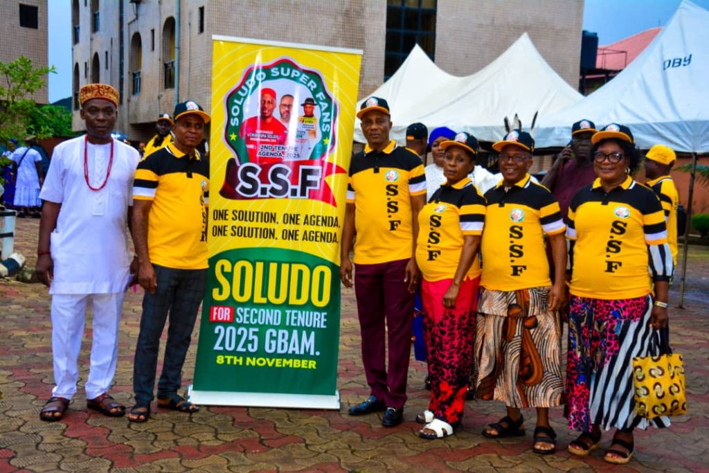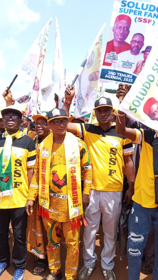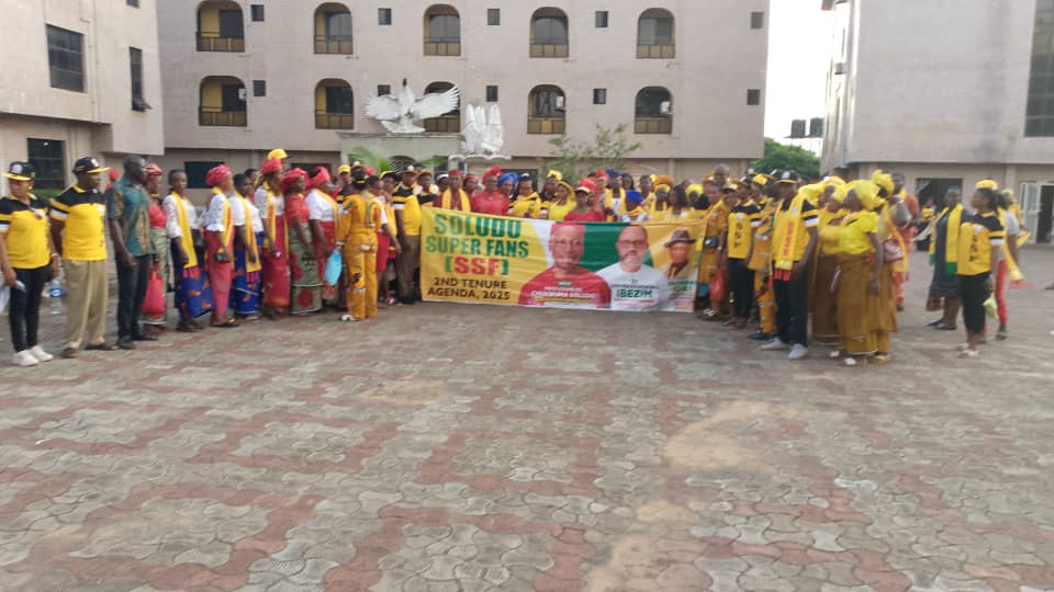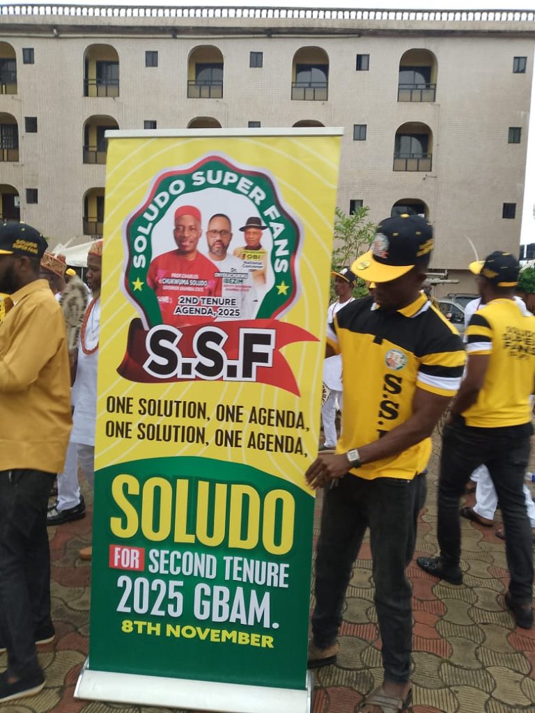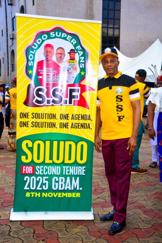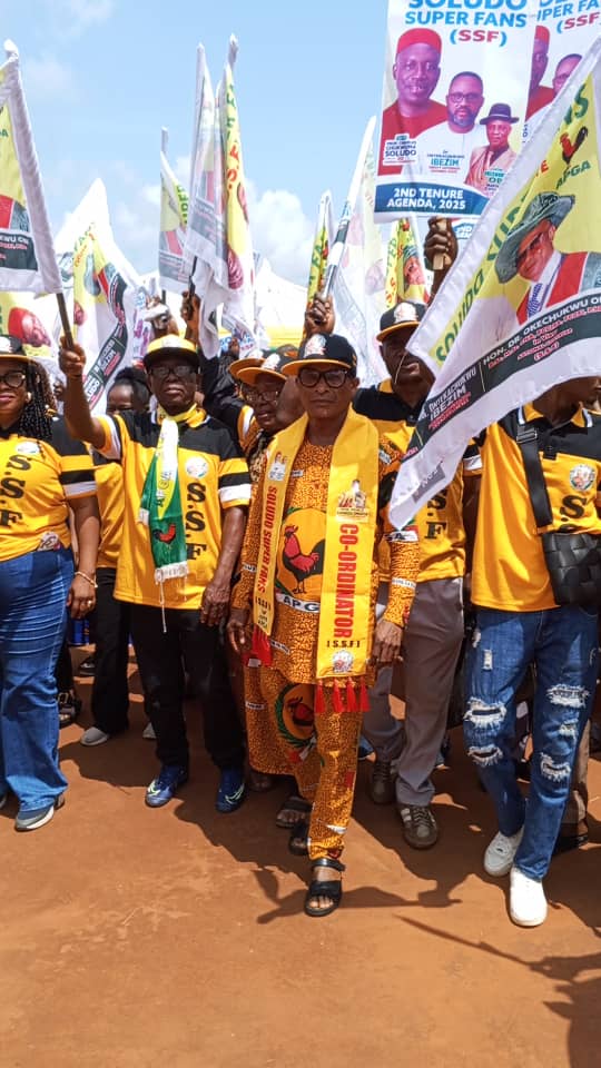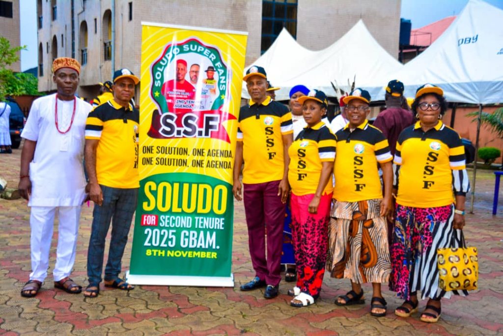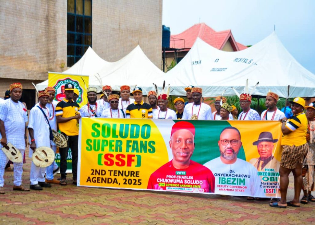 Soludo Super Fans is a formidable socio-political pressure group, Pro-Soludo group formed by able,-bodied men and women; a coalition of Youth and women group’s, CSOs, NGOs, Community Leaders, Political Associations, Market men and women, Professional, Graduates and Student bodies and Non-indigene groups, APGA party Leaders, Scholars and intellectuals of repute with massive political structures in Anambra’s 21 LGAs, entire State’s Political wards and Poling Units with strong dedication to Governor Soludo’s leadership and vision for NDI Anambra who engage in promoting Governor Soludo’s policies and initiatives and via various forms of support for Soludo’s re-election as Executive Governor of Anambra State come this year 2025.